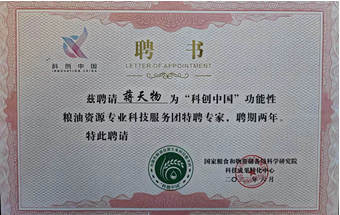 近日,益阳市粮食专家委再传喜讯:益阳市胚芽米及功能食品开发科学技术研究所所长、益阳市专家联合会粮食专家委员会会长、益阳市中华文化促进会食育专业委员会会长蒋天物同志被国家粮食和物资储备局科学研究院聘为“科创中国”特聘专家,开启功能性粮油资源专业科技服务、帮扶乡村振兴新征程。