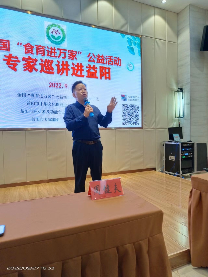 2022年9月初,中国管理科学研究所职研院批准设立的全国“食育进万家”公益活动组委会吸纳蒋天物会长作为专家组成员,启动了“主食换胚芽”公益巡讲。